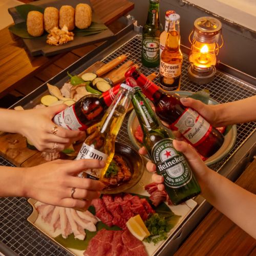 我們提供包括神戶牛肉在內的高品質食材。盡情享受兩小時的啤酒花園套餐!無限暢飲菜單包含科羅納、海尼根、斯米諾等時尚瓶裝飲品。